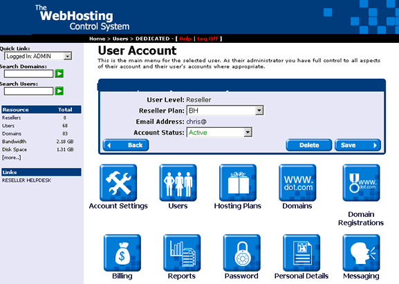 Our full function and completely automated control panel allows you, as a website owner or website reseller, to totally control all aspects of your site as well as your business. Everything from changing your password to creating new sites, to domain registration and billing can be achieved via the HostWatcher Hosting Web Control Panel. |